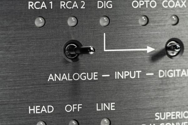 2 analog stereo inputs, unbalanced via cinch