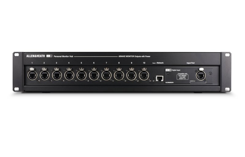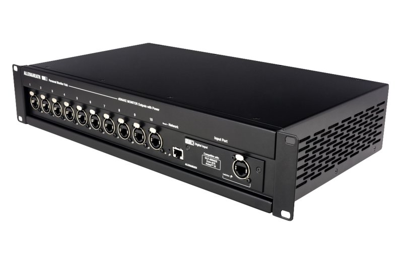 10 port PoE Monitor Hub, onboard network port, optional I/O compatible with Dante, Waves SG, MADI, Aviom A-Net2, Plug and Play with Allen & Heath Qu, SQ, Avantis and dLive Consoles