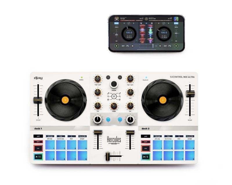 Unleash your DJ potential anywhere with the Hercules DJControl Mix Ultra – the ultimate mobile DJ controller designed for smartphone and tablet users.