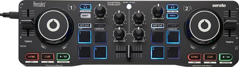 Hercules DJControl Starlight: 2-deck DJ controller with built-in audio interface.
