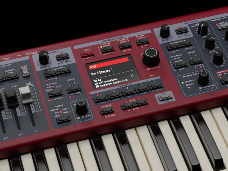 Organ Section: Based on the engine from the Nord Organ 3 including the new Rotary Speaker with selectable Mic Positions, Slow/Fast and Stop, updated transistor organ models
