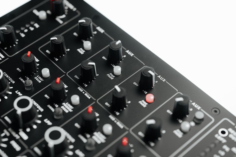 A unique feature on every input, the DRIVE control. This control allows the user to adjust the level at which the channel pre-amplifier clips the input signal, thus creating harmonic distortion as a creative effect.