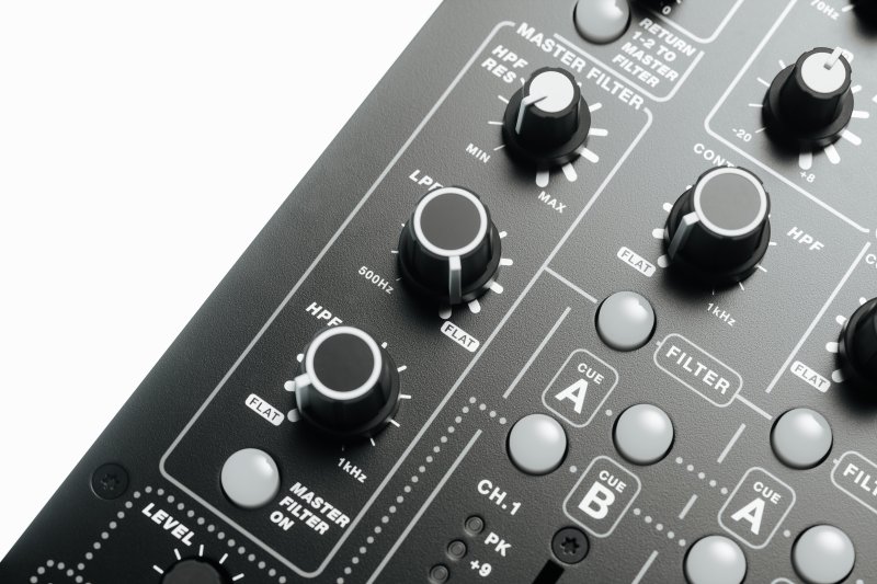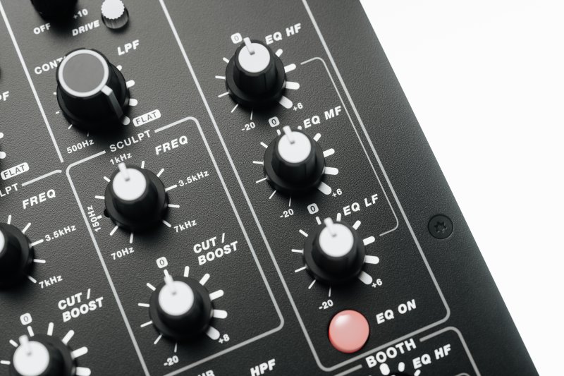 Three-Band Master EQ with asymmetric cut and boost, -20/+6dB which can be used as a performance affect, as well as a frequency correction tool.