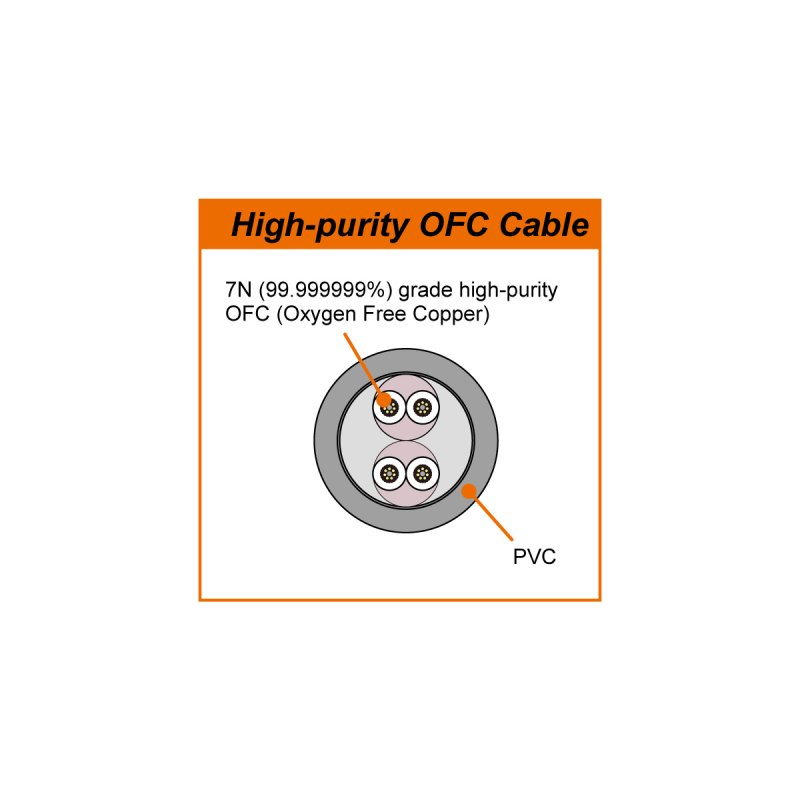 We have adopted 7N (99.99999%) grade high-purity OFC (Oxygen Free Copper) cable, which has been refined to the utmost degree to eliminate impurities and enhance transmission capacity, for the internal wiring and included unbalanced cable. Furthermore, we plan to release a 4.4 mm balanced cable (ET-TH4.4BL2Y)