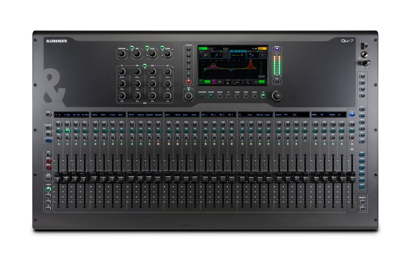 Qu-7 takes the ever-popular Qu-32 form factor and adds Allen & Heath’s powerful XCVI processing, new FX engines and Everything I/O connectivity. There’s also a capacitive touchscreen, channel strip displays and fully customizable layers. In addition, the Qu-7D variant features a built-in 16x16 48/96 kHz Dante port for interoperability with other Dante enabled equipment. Both the Qu-7 and Qu-7D are 32 channel, 96kHz digital audio mixers, combining high performance audio processing and professional features with ease of use and hands-on control.