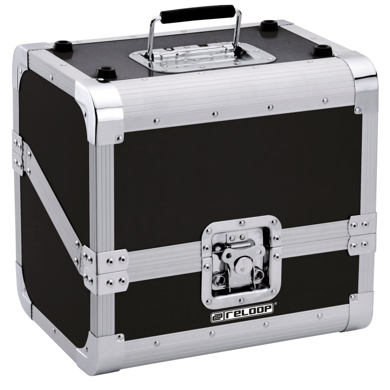 The Reloop 80 Record Case with its slanted construction offers a maximum ease of use while digging for records due to the angular sloping design of the two halves. When in divided mode, the records in the front are superiorly visible and available, while the rearmost part of the records are superiorly supported and protected compared to a conventional 50/50 division. Reloop's case innovation.
