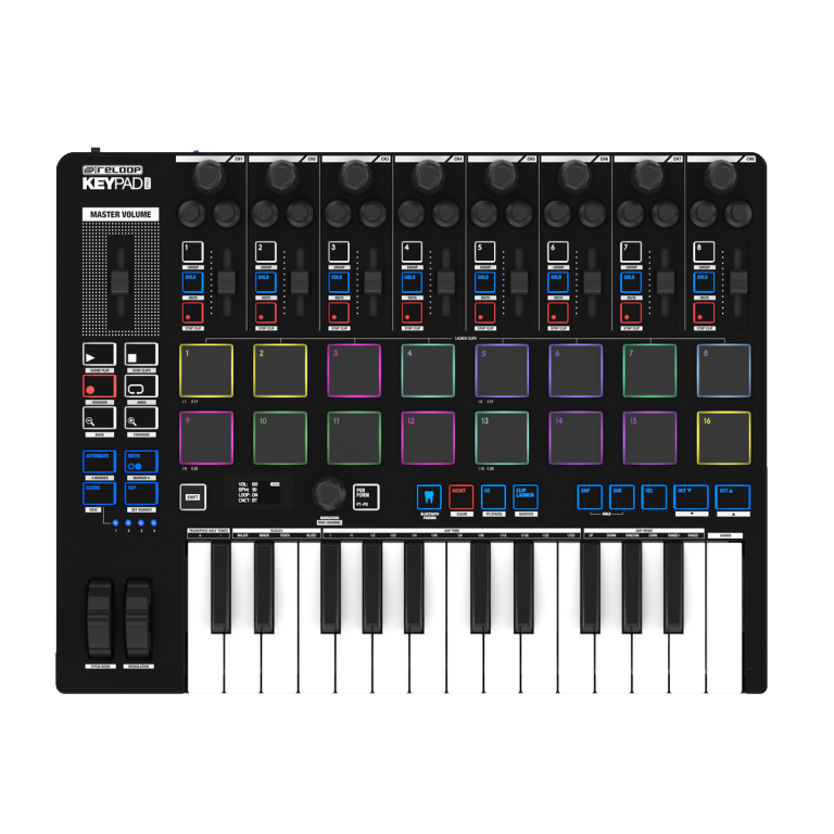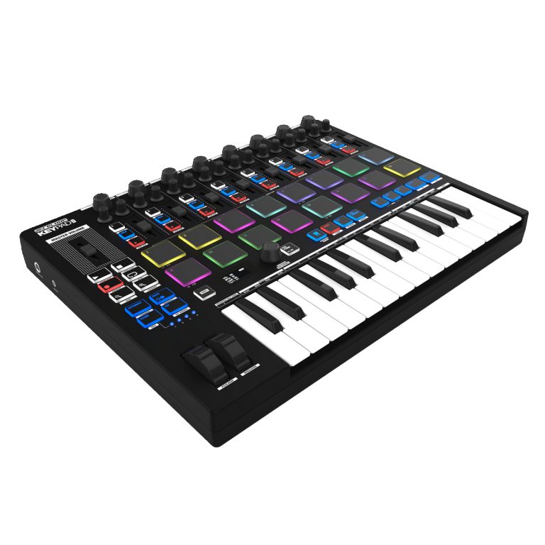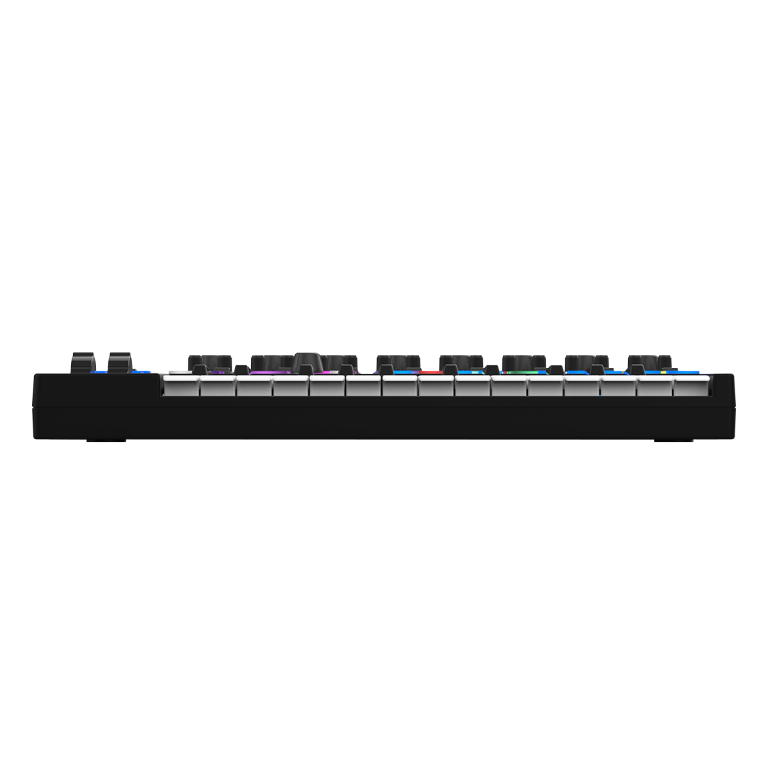 Drum pad section: Sixteen velocity-sensitive drum pads with aftertouch and RGB lighting.