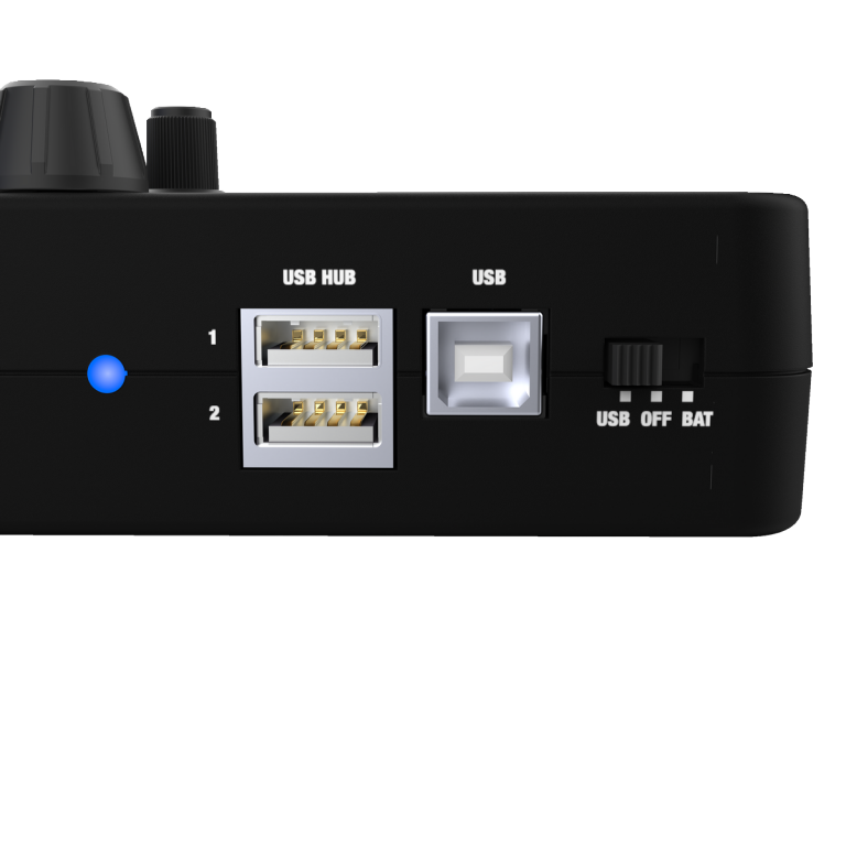 Integrated passive USB hub (2x USB-A) to connect additional recording peripherals