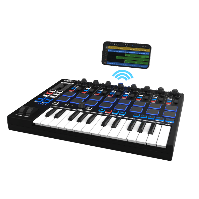 Wireless Bluetooth connection (via wireless MIDI) for mobile music production on smart devices.