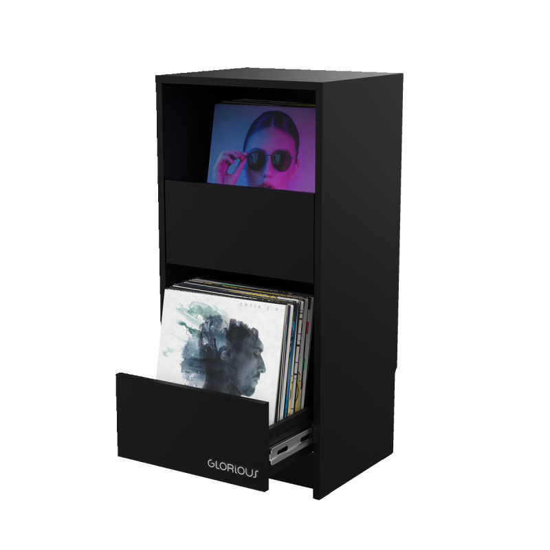 Soft-closing drawers that each holds up to 80 pcs. 12" vinyl records