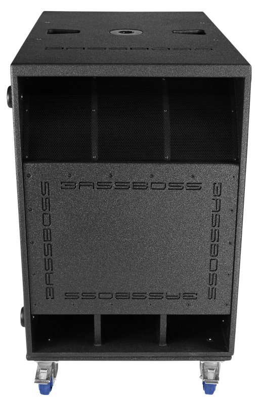 BASSBOSS wheel carts feature the same exceptionally durable, heavy-duty build as our subs. Carts are custom-designed for balance and placement to make the process of getting from vehicle to venue much easier. Subwoofer feet fit securely into the custom fitted foot pockets for stability and ease of movement. Subs can be left on carts for the gig by locking the casters into place. Flip the lock at the end of the night and roll right out the door.