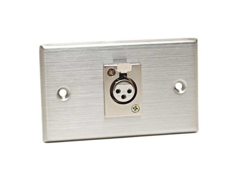 The 40-347 is a wall plate consisting of (1) 3-Pin XLR female connector. This plate is ideal for lecture halls, court rooms, music studios and broadcast stations. A brushed metal finish provides a clean and finished appearance.