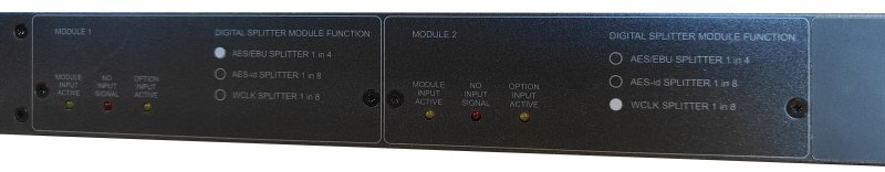 The F612 is a digital distribution amplifier for AES/EBU, SPDIF and Wordclock signals with a total of 2 inputs and 4+8 outputs. The device consists of two modules: