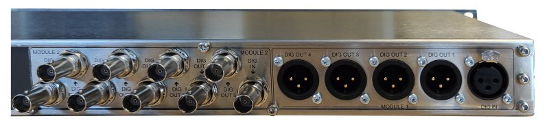 All inputs and outputs are transformer-balanced, impedance 110 ohms, via gold-plated XLR sockets according to AES 3/11