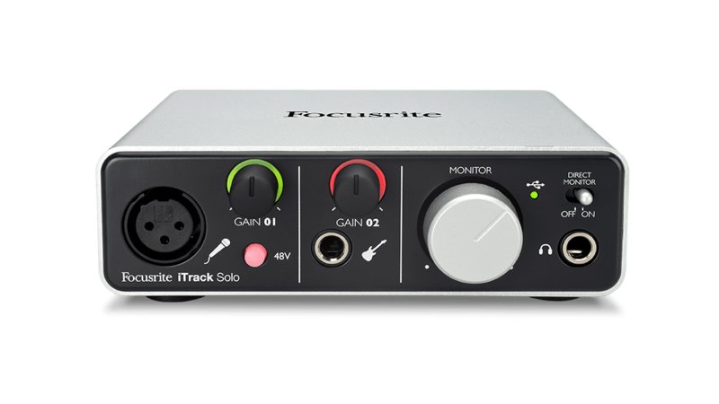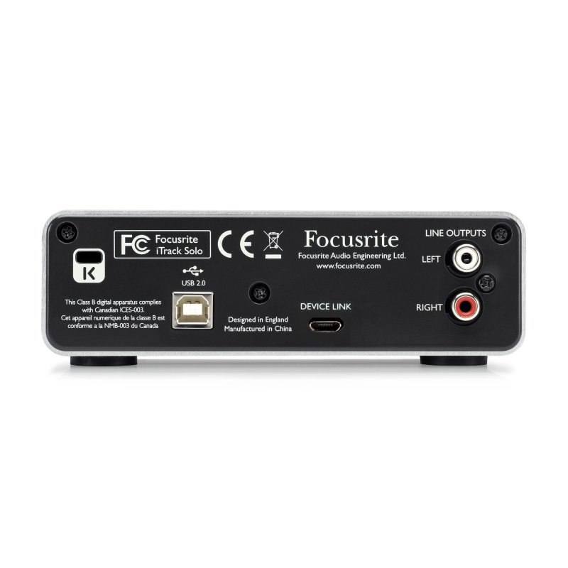 The iTrack Solo (Lightning) from Focusrite is a 2 input/2 output USB audio interface that provides an easy way to record instruments and vocals to a Lightning compatible iPad, or a Mac or Windows based computer. Featuring a Focusrite microphone preamp, the interface is housed in a compact, rugged but lightweight aluminum case, and is an excellent companion for any singer-songwriter who wants to record their creations or practice. The front panel has an input for a microphone, along with an input for an instrument such as an electric guitar, bass guitar, or the output of an electro-acoustic guitar. Signal halos around the gain knobs provide feedback for setting optimal audio levels for recording. The headphone output includes a Direct Monitor Switch for eliminating any latency during recording and a pair of RCA line outputs allow for connectivity to other monitoring solutions. The unit supports a digital resolution of up to 24-bit/96 kHz and includes Ableton Live Lite music making software and the Focusrite Scarlett Plug-In Suite, the latter providing several audio processing tools including gate and reverb, compression, and EQ. |