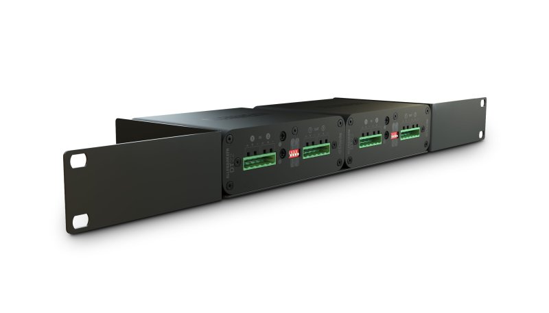 2in x 2out Dante I/O expander with 2 dLive 96kHz mic/line inputs and 2 line outputs, Phoenix euroblock connectors, PoE or DC, switchable 48kHz / 96kHz, surface mount ears, no power supply or rubber feet