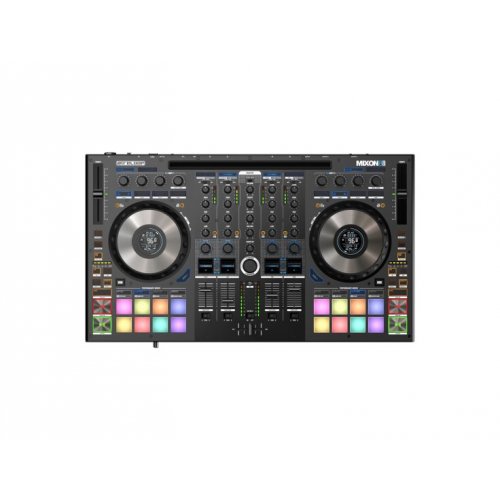 ENHANCED JOG WHEELS WITH REAL-TIME DISPLAYS: Boasting sleek, touch-sensitive gun metal platters and high profile rims, the enhanced jog wheel design of the Mixon 8 Pro allows you to control your music precisely. And thanks to the new vivid on-jog displays, DJs are kept well informed with real-time track information, including virtual needle illumination, a playhead position indicator, and track time remaining or elapsed. FOUR FX PADDLES FOR INSTANT EFFECTS: As an industry first, the Mixon 8 Pro features 4 sturdy onboard FX Paddles, providing instant tactile control of all your effects. Each channel also has a 3-band EQ and dedicated sound color filters to shape your music even more (LPF/HPF). STAND-ALONE MIXER INSIDE: The powerful inbuilt standalone mixer with independent level meters for inputs and outputs gives you flexible connections to either turntables or media players so you can mix digital and analogue sources simultaneously (2x Phono/4x Line). For even more convenience, you can also route the dual Mic inputs (XLR/Jack) with dedicated talk-over functions into the mixer channels to perfectly EQ your live vocals with onboard controls. 2x AUDIO INTERFACES WITH USB-C: The dual USB audio interface of the Mixon 8 Pro provides easy connection for 2 laptops or an iPad (1x USB-B, 1x USB-C/USB-B switch) facilitating absolutely seamless handover between DJs. As another industry first, the Mixon 8 Pro offers USB-C device support for new generation Apple iPads and MacBooks (incl. power delivery support) with 24-bit characteristics for superior audio quality with low latency. XXL PERFORMANCE MODE SECTION: The spacious performance area of the Mixon 8 Pro comfortably gives you access to 8 color-coded performance modes, including several software exclusives – with all the tools you need to maximize your mixing (Hot Cue, Loop Roll, Saved Loop, Sampler, Pitch Play², Saved Flip³, Slicer, Scratch Bank, Looper Mode, Neural Mix™ Mode, Touch FX). |
