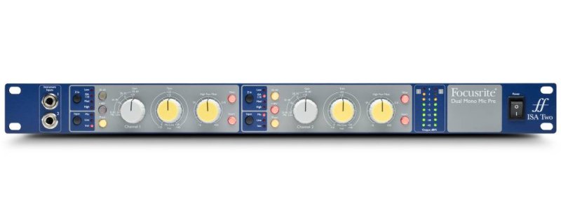 The ISA Story goes back to 1985, when Sir George Martin commissioned legendary designer Rupert Neve to design new modules for the console at AIR Montserrat. They were so successful that more were commissioned for AIR London. These original modules form the basis of today’s Focusrite ISA range – delivering the legendary Focusrite sound to leading studios, artists, producers and engineers around the world. Literally hundreds of hits have been made with the Focusrite ISA Range – and continue to be made today. Focusrite’s ISA Two brings together a totally independent pair of legendary ISA microphone preamps inspired by the original ISA 110 module, combining the best of traditional solid-state electronics with the original input transformer specified by Rupert Neve – the Lundahl LL1538. Two is a nice round number – ideal for recording, say, a vocal and an instrument, or a stereo piano. But though you may only need two mic pres, you owe it to your craft to choose the best. (And if you need more, we offer ISA 428 Mk II 4-channel and ISA 828 8-channel units too.) Focusrite has made one little adjustment to the mic pre. The original ISA 110 had a single input impedance that was ideal for the mics of the time. In the ISA Two there are three more, allowing you to get the very best out of any microphone, vintage or modern. Give a vintage mic the input it expects to get a traditional, warm sound. Pair the ISA Two with modern microphones and get the most transparent sound imaginable. Or experiment and pull out the inner character of any microphone you care to try. Couple that with up to 80dB of gain and you can be ready for anything. In addition to the mic pres, there are front panel instrument inputs for instant access, along with rear-panel line ins. There’s also a balanced insert point on the rear panel, actuated with a front-panel button so you can insert the EQ, dynamics or other processors you need. Add to that the user-calibrated 8-LED metering and variable |