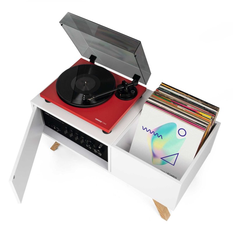Open record crate for digging through your collection and access to up to 130 12''-records